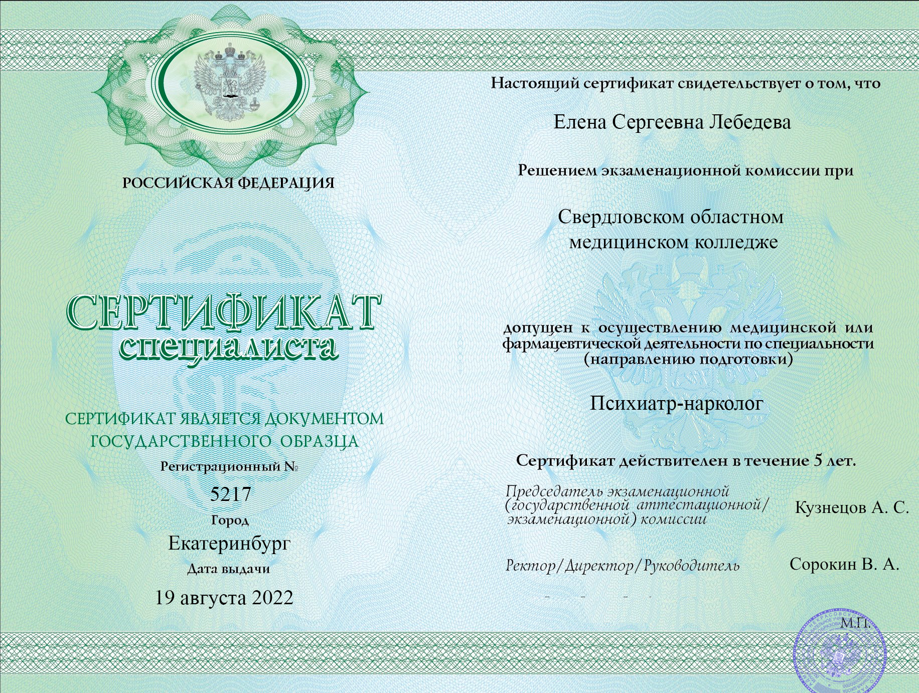 Елена Сергеевна Лебедева врач нарколог клиники доктора Стукаловой в Дятьково